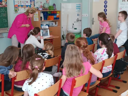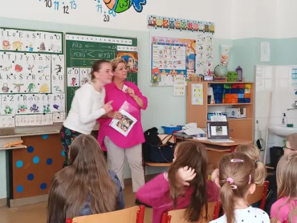 Dnes proběhla ve školní družině přednáška pro děti z oddělení Limetka a Jahoda, která byla zaměřena na problematiku zvířat žijících na ulici. Děti se dozvěděly, jak probíhá jejich odchyt, proč je důležitý a jak lidé mohou těmto zvířatům pomáhat. Součástí byly i skutečné příběhy doplněné fotografiemi, které dětem přiblížily reálné osudy opuštěných zvířat. Nejvíce jim v paměti utkvěl kocourek Sapík, který neměl tolik štěstí jako domácí mazlíčci. Celé setkání však neslo pozitivní poselství – i když některé příběhy nebyly snadné, vše nakonec dobře dopadlo a zvířata našla pomoc i nový domov.