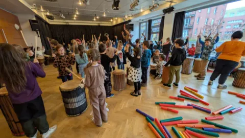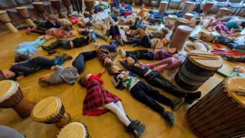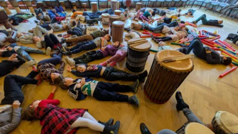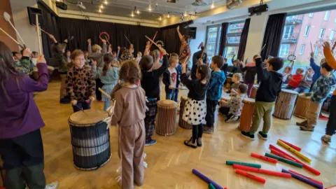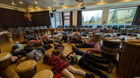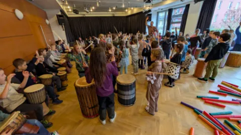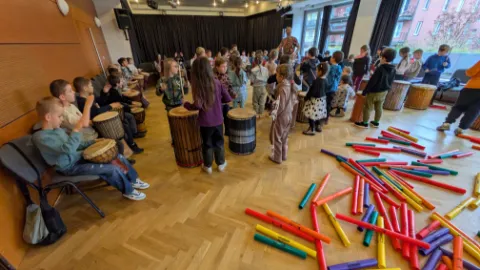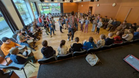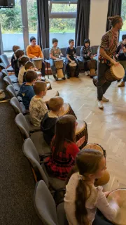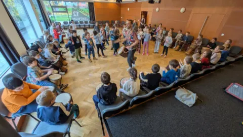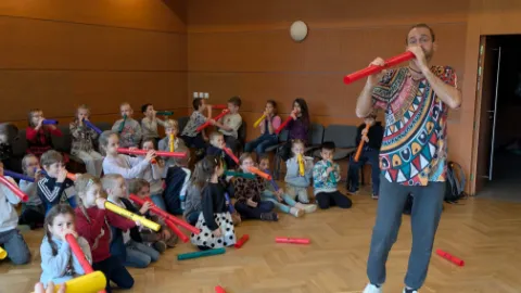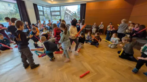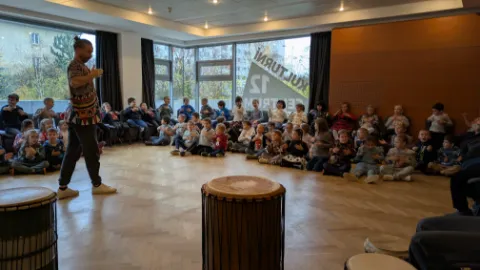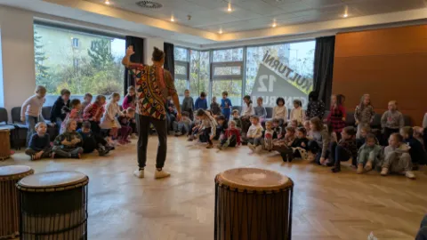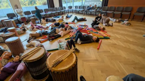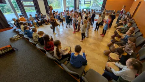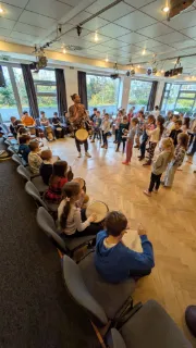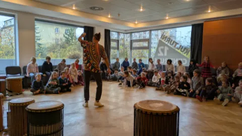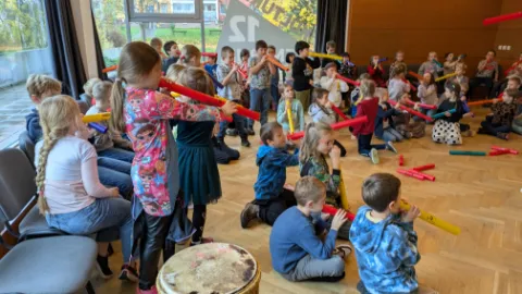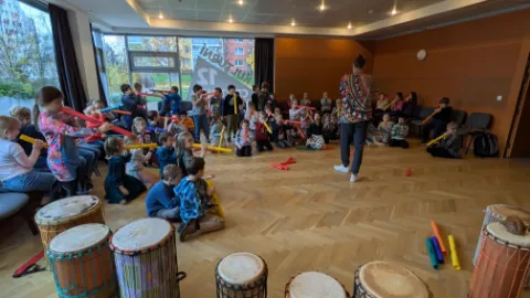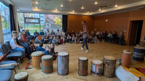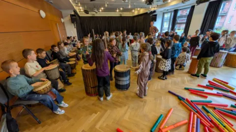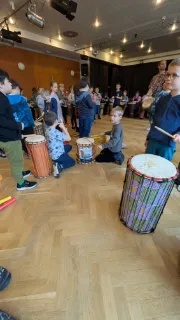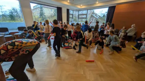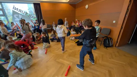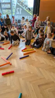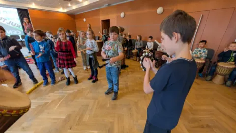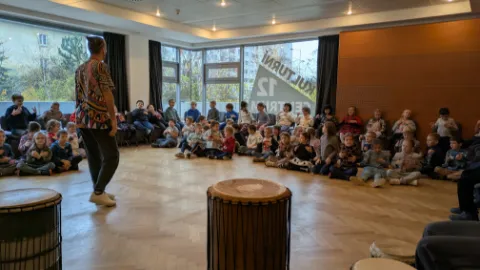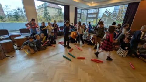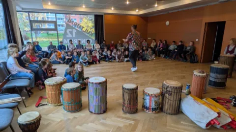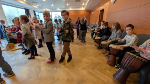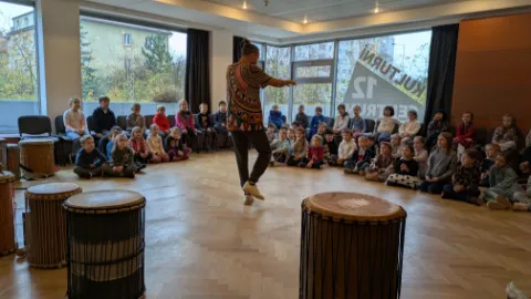 Na svatého Martina jsme vyrazili do KC 12 a seznámili se s různými perkusními nástroji. Prohlédli jsme si bubny dundun a djembe a také si na ně zahráli. Nakonec jsme si poslechli africkou harfu, které se říká kora. Program "Dostaň se do rytmu" se všem moc líbil.