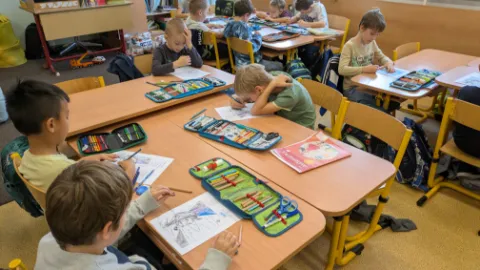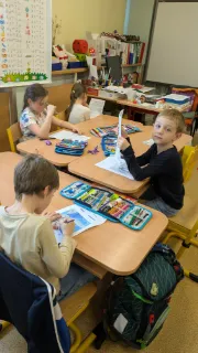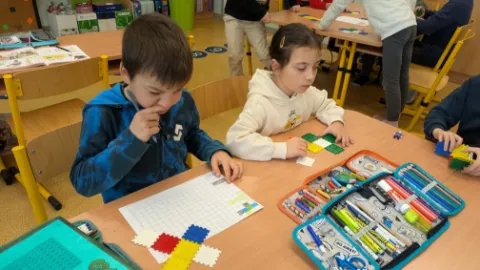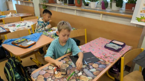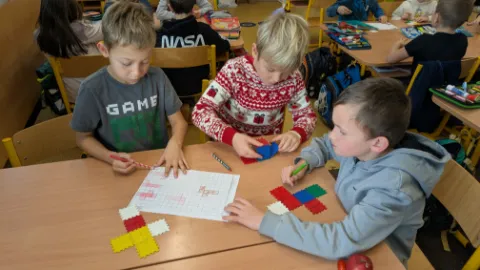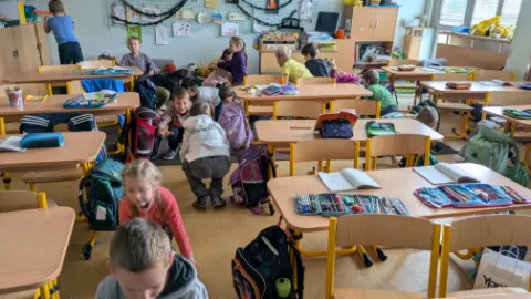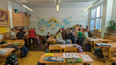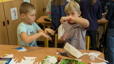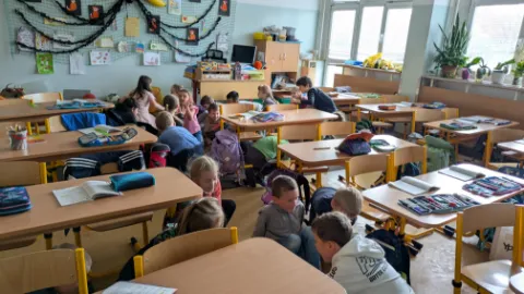 Listopad ve 2.A včera |Školní akce |Jitka Podzimková |71x V listopadu jsme bubnovali, ochutnávali ovoce a také měřili na stopy, prozkoumali svatého Martina a vycpali husu, připravovali výrobky na akci Děti dětem a hledali všechny možné pláště krychle.
