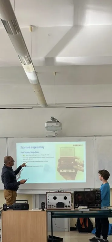 Přišli s ohromným vybavením. Ukázali nám různé gramofonové desky, ukázali pořádný magnetofon i kazety a já se vrátila hluboko do minulosti, kdy se kazeta přetáčela tužkou a deska praskala tak, že ani nebylo slyšet Pohádky z bílého pyžamka, které mi na ní rodiče pouštěli. Volkeovi nás vrátili v čase a bylo to moc fajn.