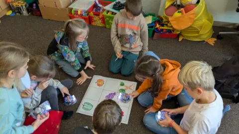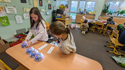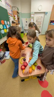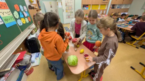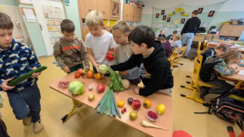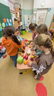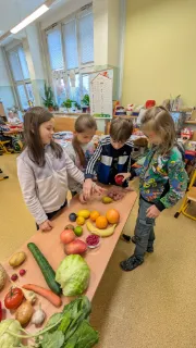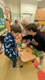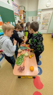 Celý den jsme se věnovali poznávání a ochutnávání ovoce a zeleniny. Vyrobili jsme si každý ovocný a zeleninový špíz a zvolili jsme si ty nejkrásnější. Ovoce a zeleninu jsme si i potěžkali a roztřídili. A nakonec jsme povolali beruškové roboty, aby nám ovoce a zeleninu našly. Vypadá to jednoduše, ale dalo nám to dost práce :-).