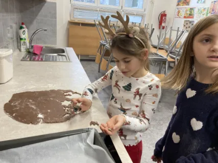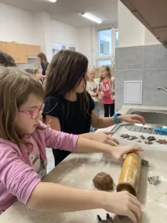 Pečení cukroví ve 2.C 19. 12. 2025 |Školní akce |Anežka Novotná |12x Před Vánoci jsme si ve školní kuchyňce upekli perníčky. Provoněli jsme celé přízemí a moc si pochutnali.