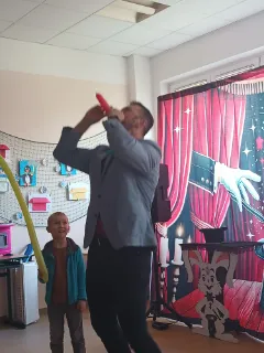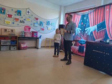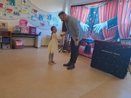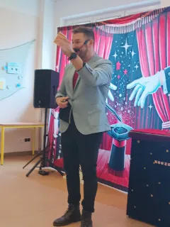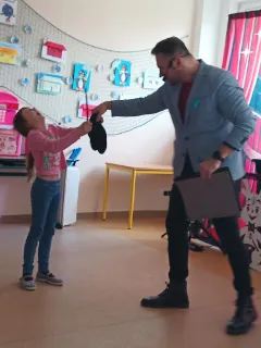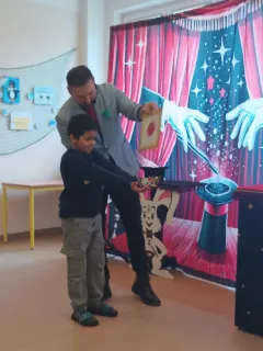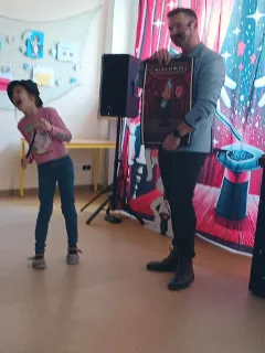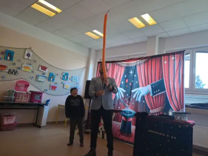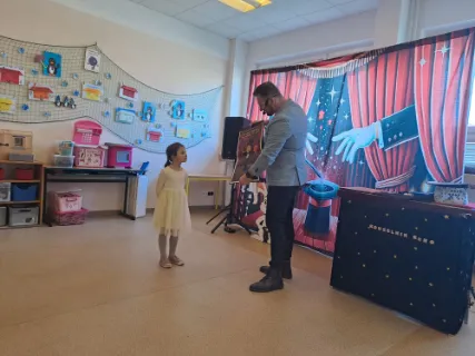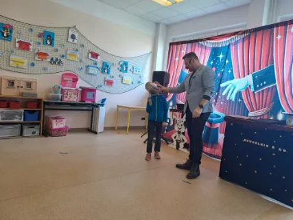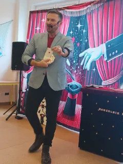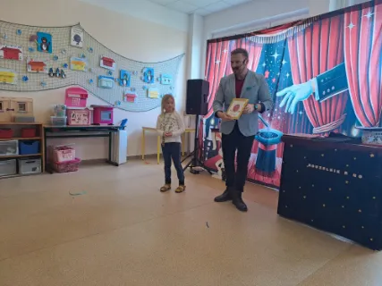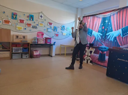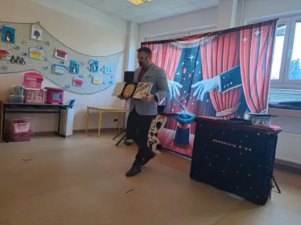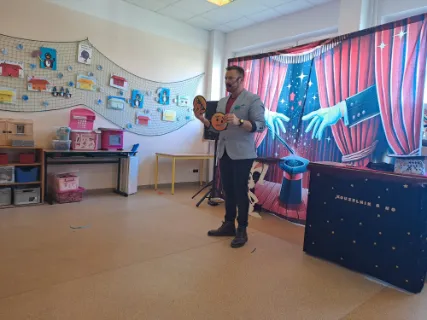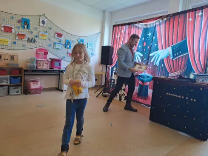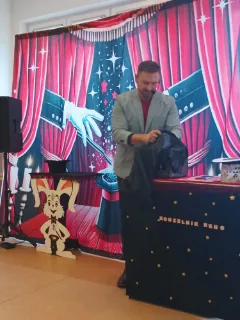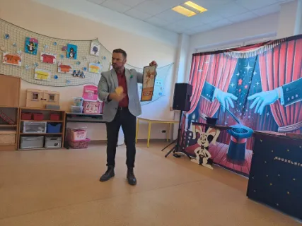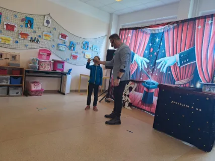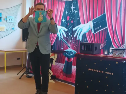 Ve čtvrtek se naše školní družina proměnila v místo plné tajemství, úžasu a radostného smíchu. Navštívil nás kouzelník Reno se svou velkolepou show, která děti doslova vtáhla do světa kouzel a čarování. Během vystoupení jsme mohli vidět neuvěřitelné triky s kartami, mizící předměty i kouzla, při kterých děti samy aktivně pomáhaly na pódiu. Nechyběla ani pořádná dávka humoru a překvapení – smích a potlesk zněly po celé družině. Zlatým hřebem programu bylo závěrečné kouzlo, kdy kouzelník Reno před očima všech vykouzlil živého hnědého králíka. Nadšení dětí bylo obrovské – v očích jim zářil úžas a radost z opravdového kouzla. Děkujeme kouzelníkovi Renovi za nezapomenutelný zážitek a těšíme se zase někdy příště na další kouzelná setkání. Vychovatelky z Ovocné zahrádky