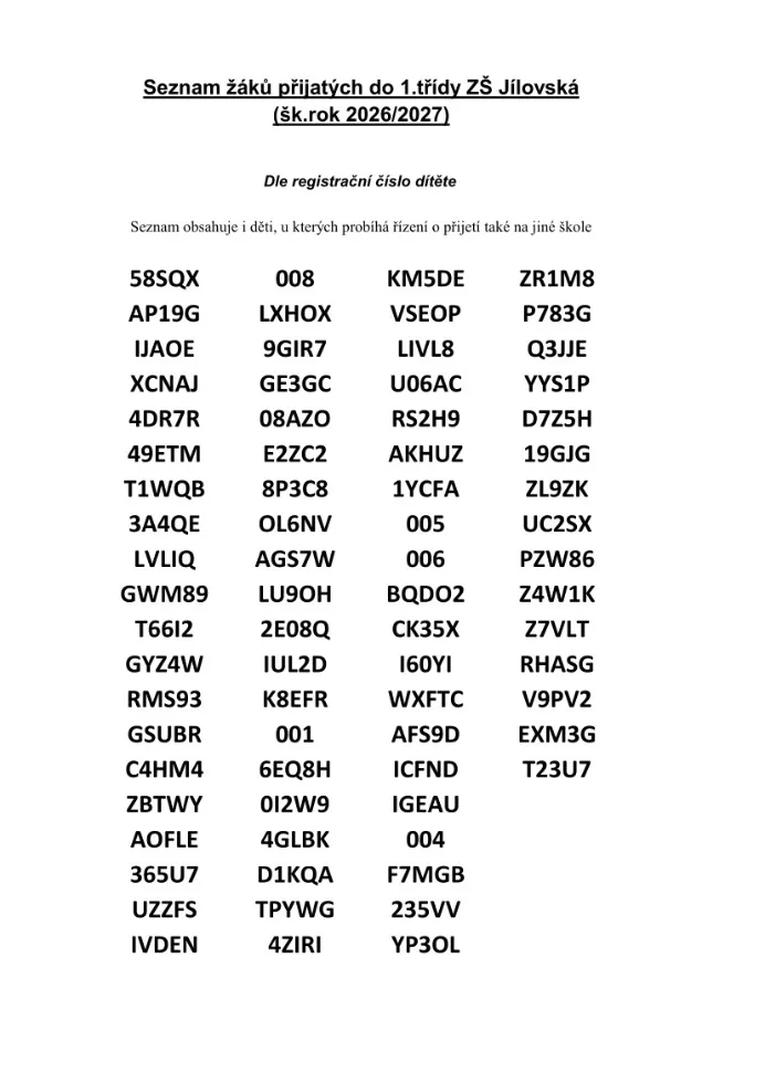 Výsledky zápisu do prvních tříd pro školní rok 2026/2027