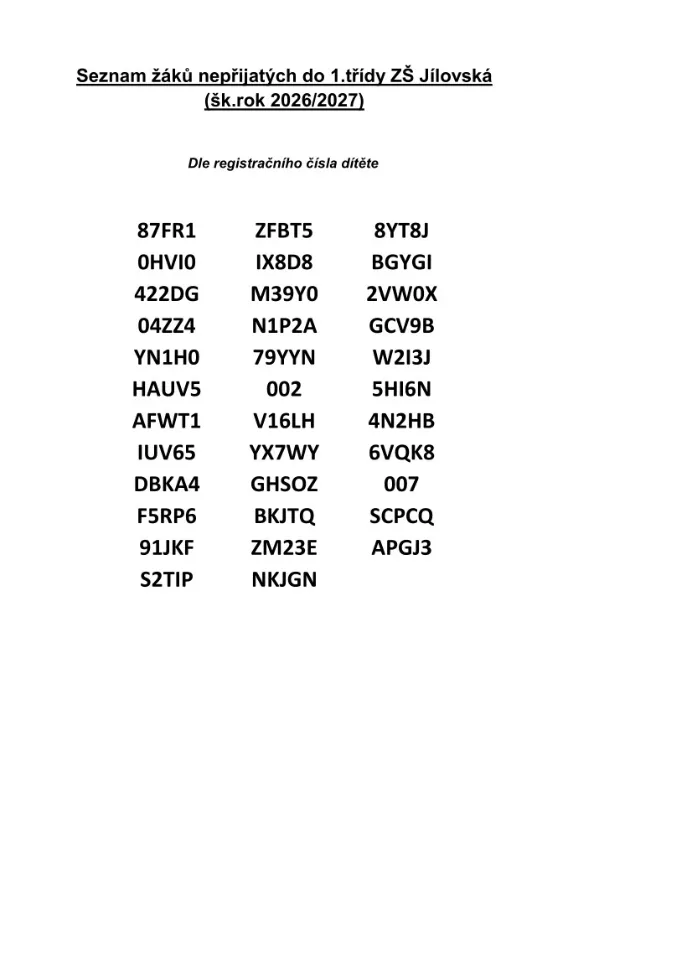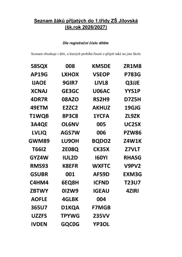 Výsledky zápisu do prvních tříd pro školní rok 2026/2027