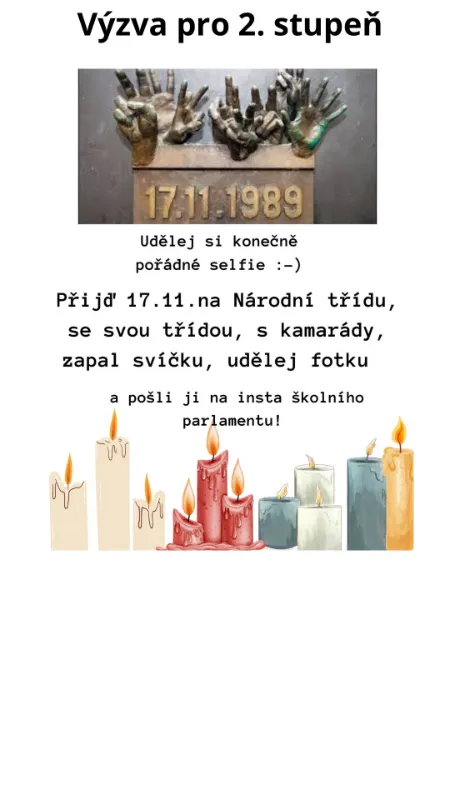 Zapal svíčku na Národní třídě 17.11. a pošli fotku na náš Instagram parlament_zs_jilovska.