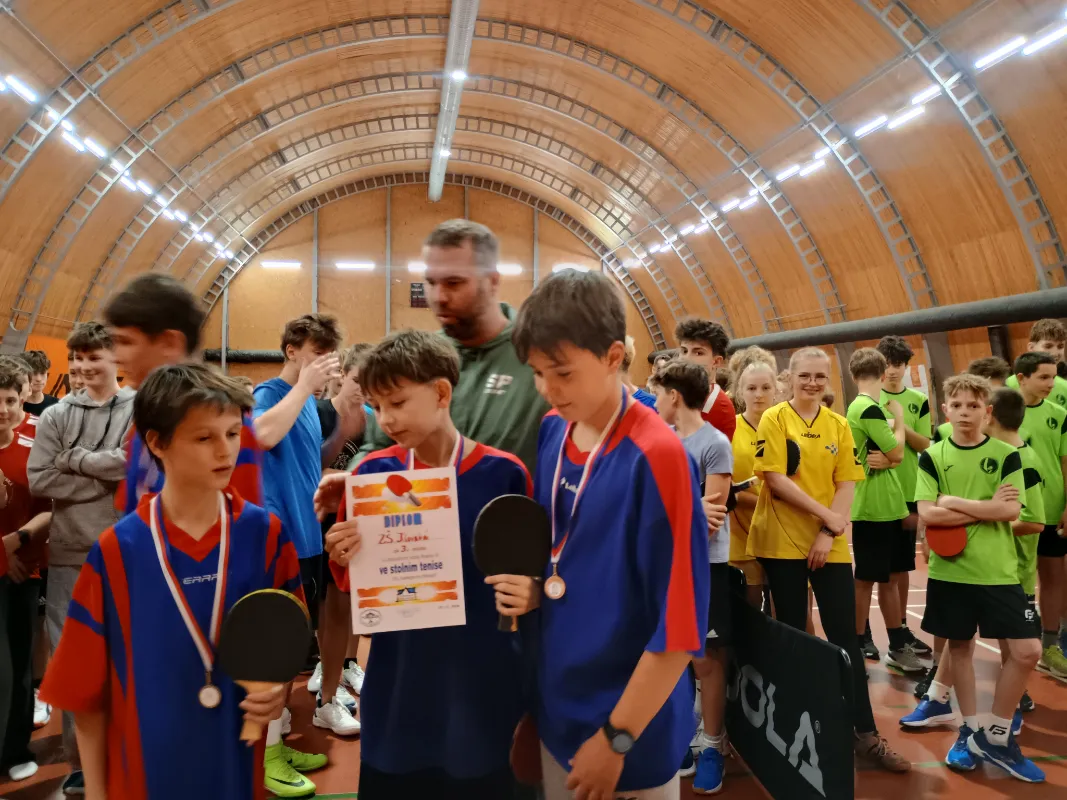 3. místo mladších žáků v ping-pongu! 3. 12. 2025|Soutěže |2x V obvodním kole ve stolním tenisu vybojovali naši mladší žáci krásné 3. místo