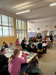 Dnešní akce „Snídaně s knihou“ proběhla velmi příjemně a v přátelské atmosféře. Nejprve jsme si společně prohlédli poutavou výstavu obálek knih, kterou připravily třídy 6. A a 6. C. Následovalo společné posezení u stolu, kde jsme si vyměňovali domácí dobroty – mnozí přinesli vlastnoručně upečené speciality, o které se rádi podělili. Poté proběhla živá diskuse o knihách – o oblíbených titulech, autorech i čtenářských zážitcích. Po diskusi následovalo 20 minut tichého čtení, během kterého si každý mohl v klidu věnovat své knize. Závěr patřil opět sdílení dojmů a nejzajímavějších momentů z četby. Děkujeme všem žákům za účast, za přinesené dobroty a za pozitivní přístup. Těšíme se na další setkání! ??