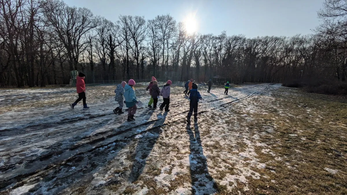 V lednu jsme se sešli jen dvakrát - prozkoumali jsme naše okolí na zimní procházce a zahráli jsme si u řeky ocásky. V únoru jsme si zabobovali na posledním pražském sněhu a vyplnili otázky o hřišti Na Staré poště. Pokaždé jsme byli venku, bylo to fajn.