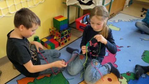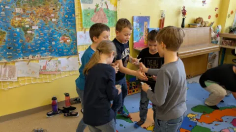 V únoru jsme řádili na Kroužcích na Vltavě a podnikli zimní procházku s úkoly. V březnu jsme se pokusili najít studánku, uzlovali a vyrobili si přívěšek na klíče, prolezli kládové hřiště a hledali v lese klacky a trávy podle pokynu. Bylo to fajn, už se zase těšíme do lesa.