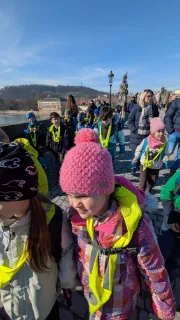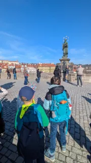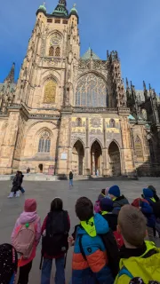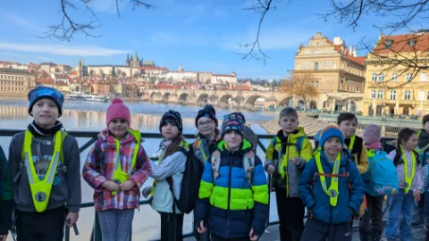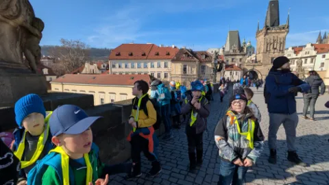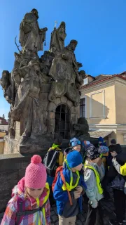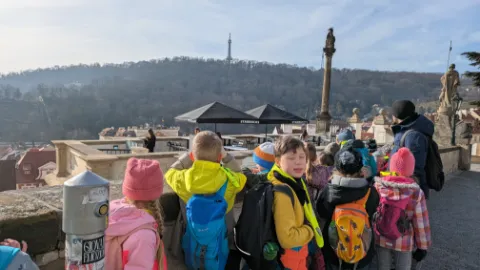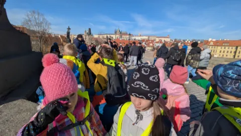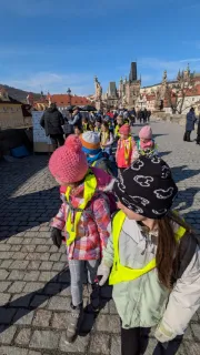 Vlastivědná procházka Prahou DNES|Školní akce |85x Ve čtvrtek se 2.A vypravila objevovat krásy Prahy. Stihli jsme si prohlédnout Pražský orloj, Pražský hrad, domovní znamení v Nerudově ulici a Karlův most. Poslechli jsme si řadu pověstí. O našem cestování jsme si vytvořili knížku.